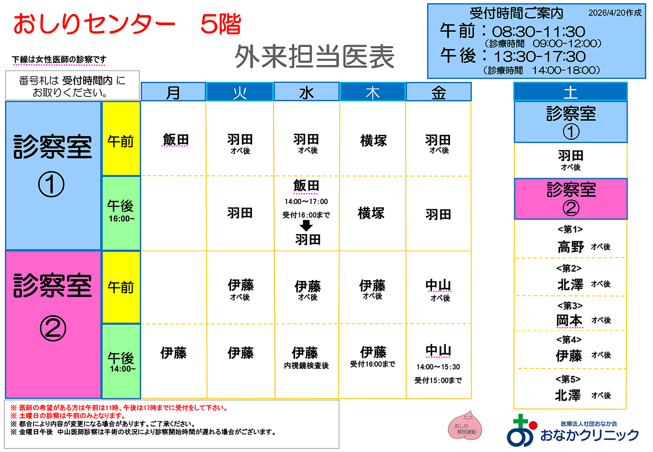 外来担当医表