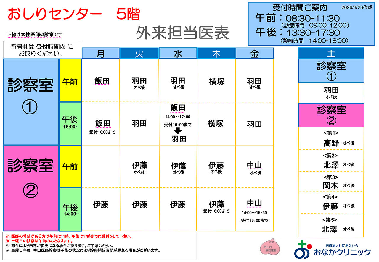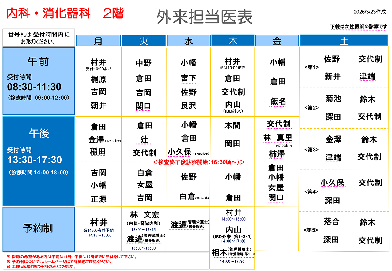 外来担当医表